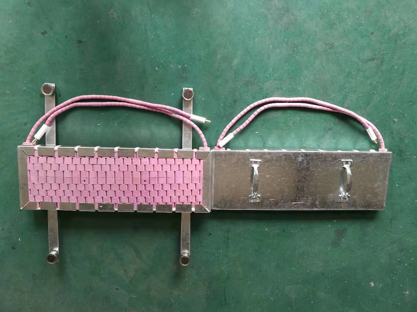 工裝對開式加熱器是用履帶式陶瓷電加熱器制作兩個半圓形的對開式電加熱器,適用于中小型管道的焊前預熱和焊后處理。
